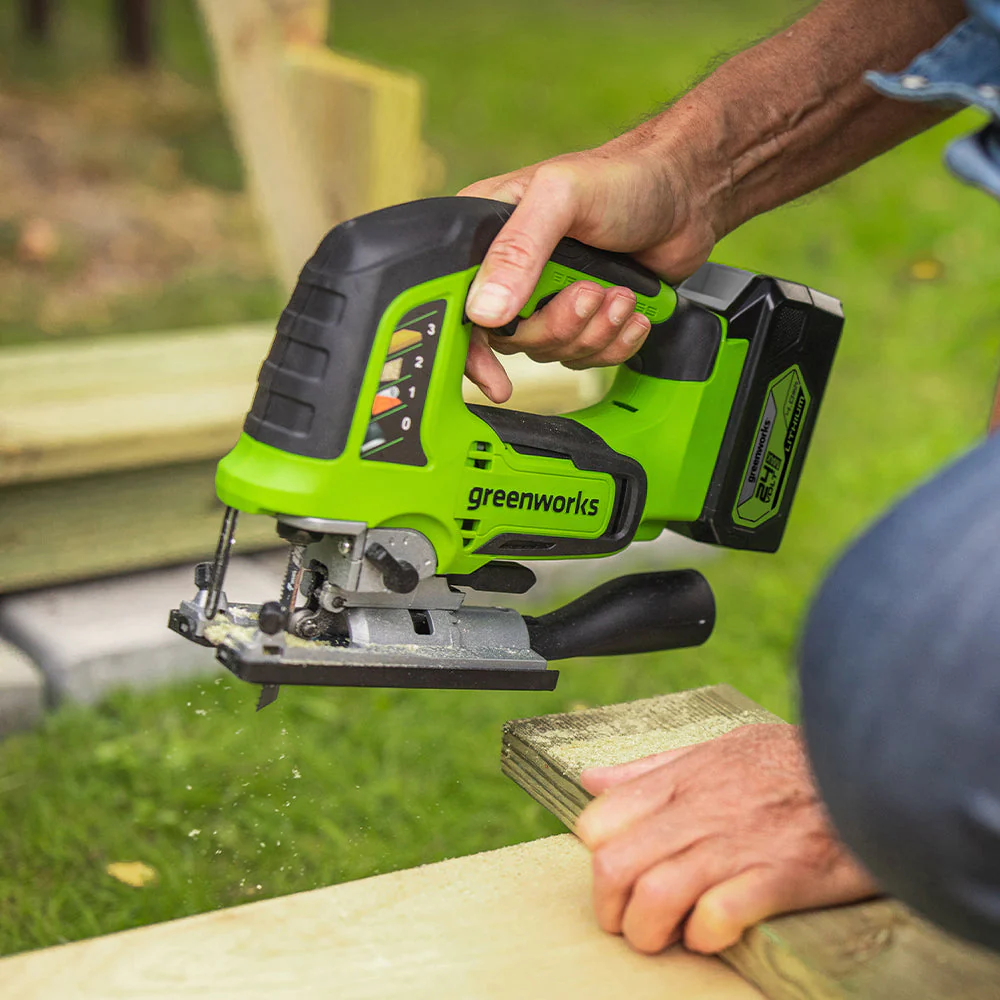 - Run by any Greenworks 24V Battery